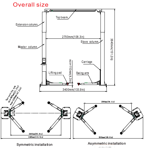 5. Wire rope equalization system forces synchronous movement of two carriages and effectively prevents vehicle form tilting.