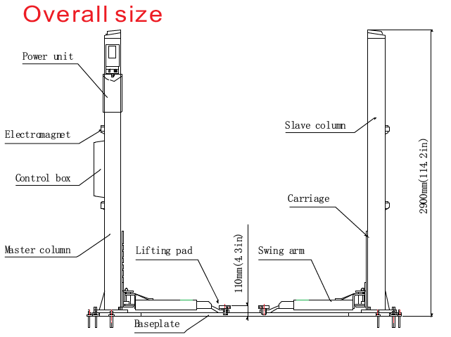 11. Anti-explosion valve is deployed to make lift slower or stop lowering for the case of oil explosion, thus protects operator’s safety and vehicle not being damaged.