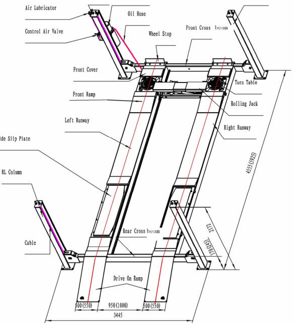 Wheel Alignment 4 Post Lift (Rated Capacity: 4 Ton) is used for lifting of various small and medium-sized vehicles with total weight below 4.0t in garage and workshop.